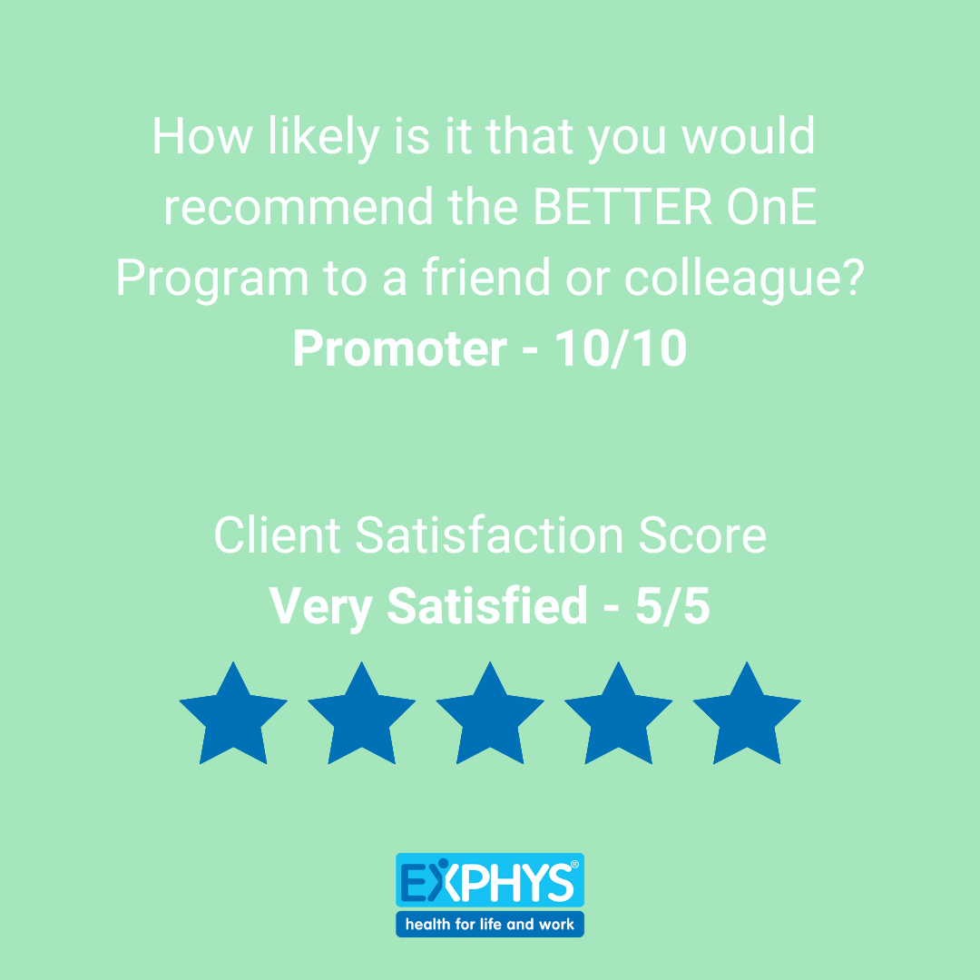 Our referring customers tell us that the EXPHYS team are experienced, skilled and mature health professionals and clients tell us that EXPHYS has single-handedly made the most positive difference to their health and life. This is something that we are extremely proud of.