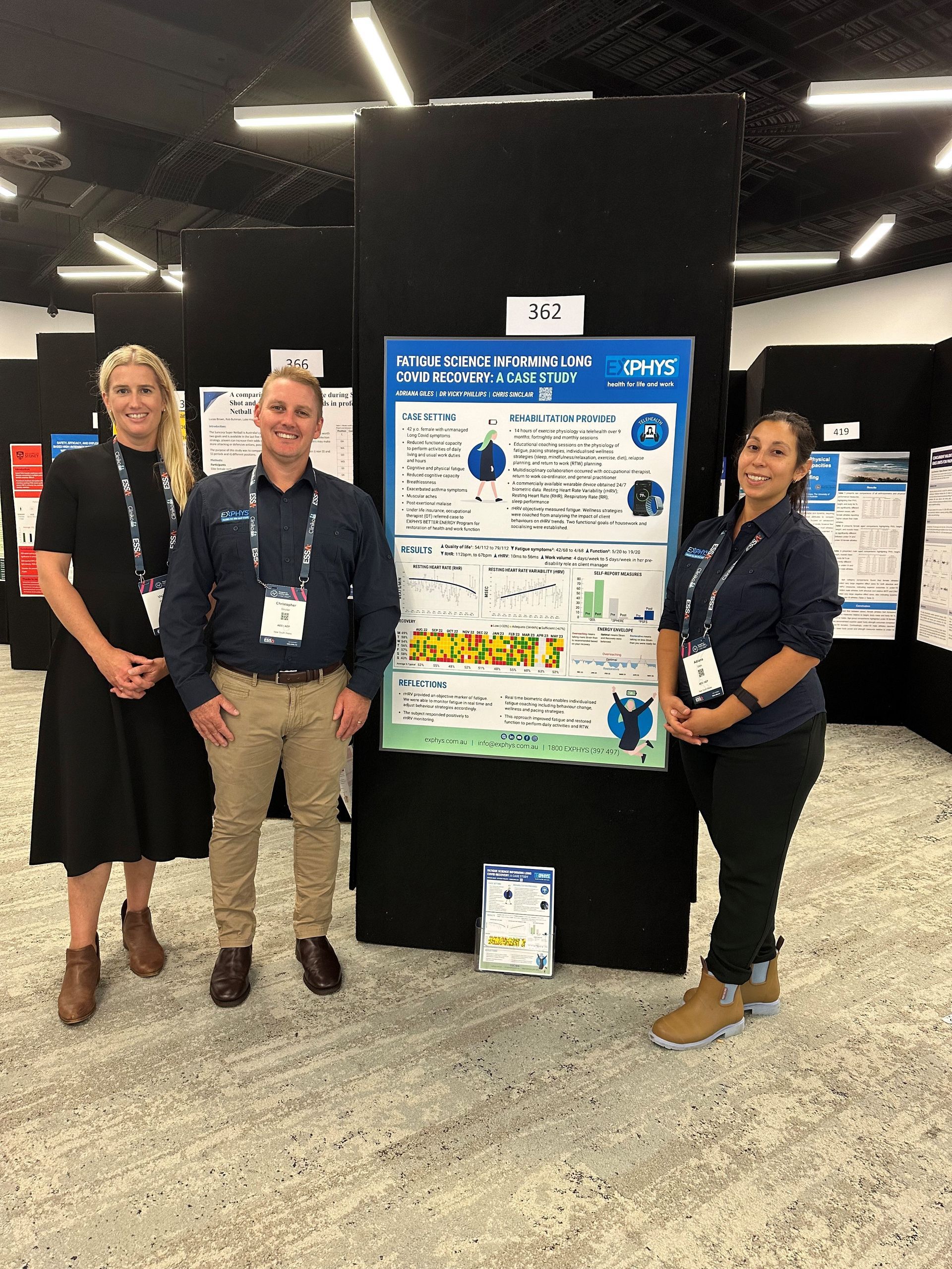Adriana Giles, Clinical and Rehabilitation Lead, showcased the remarkable outcomes achieved through the EXPHYS BETTER ENERGY Program in this impressive poster. This was proudly presented at the Exercise and Sports Science Australia (ESSA) Research to Practice 2024 Conference.